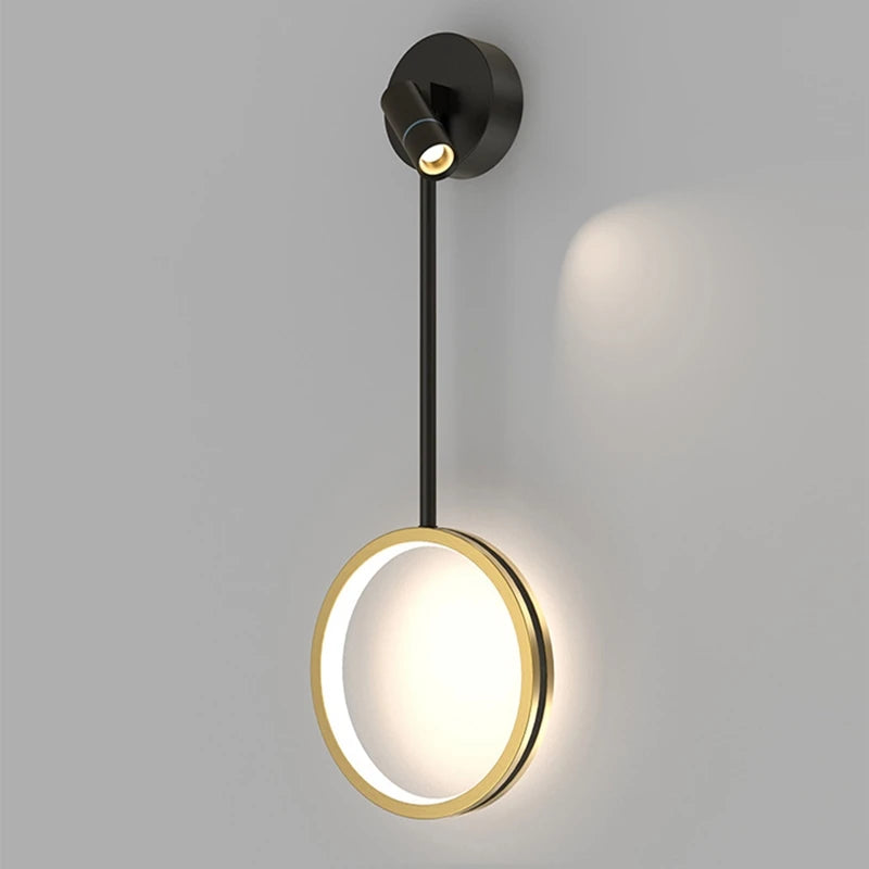 Cette applique murale se distingue par son design moderne et créatif. Elle est composée d'un anneau et d'un projecteur, qui ensemble, créent un jeu de lumière fascinant. Le projecteur permet de mettre en valeur les zones spécifiques de votre pièce, alors que l'anneau ajoute une décoration lumineuse subtile et élégante. Cette lampe murale est disponible en deux couleurs, noir et or, pour s'adapter à tous les styles d'intérieur.