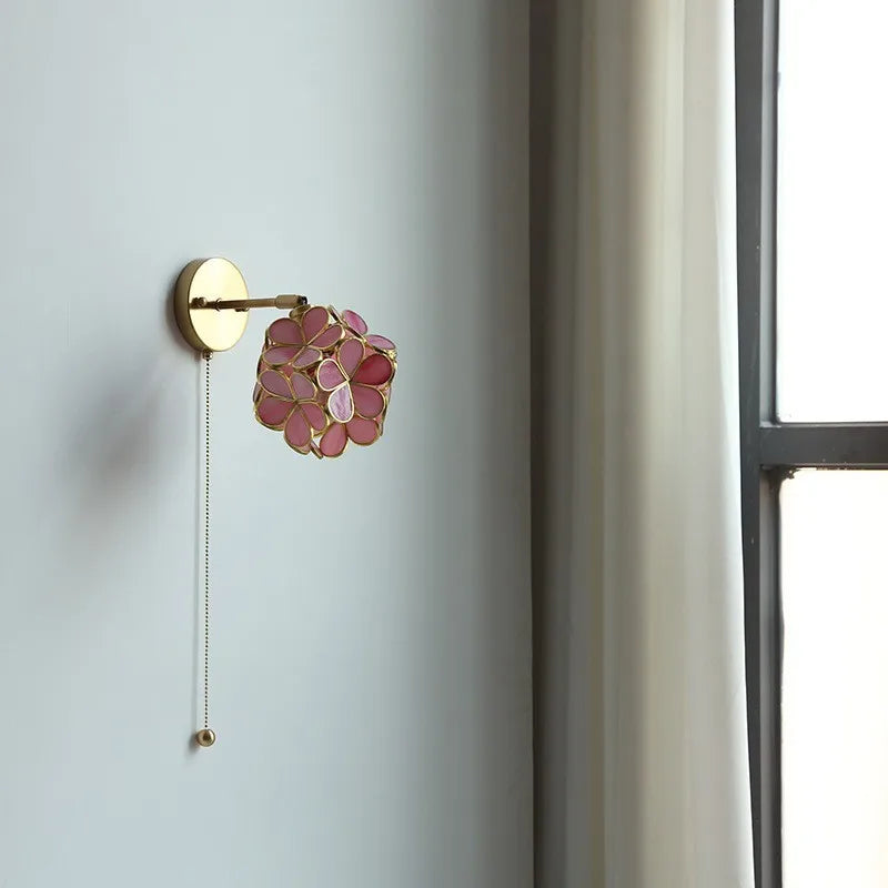 Nom du produit | Applique murale vintage interrupteur à chaînette style nordique fleurs roses |