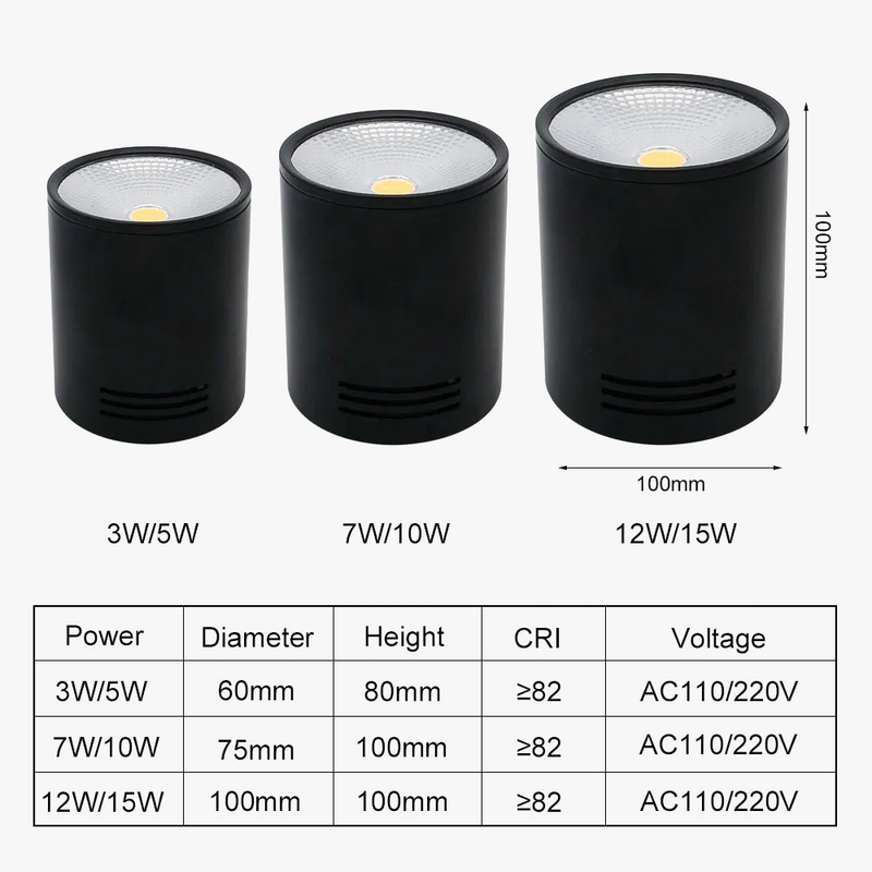 Nom du produit Spot dimmable led cob monté en surface downlight 3w/5w/7w/10w/12w/15w blanc/noir boîtier