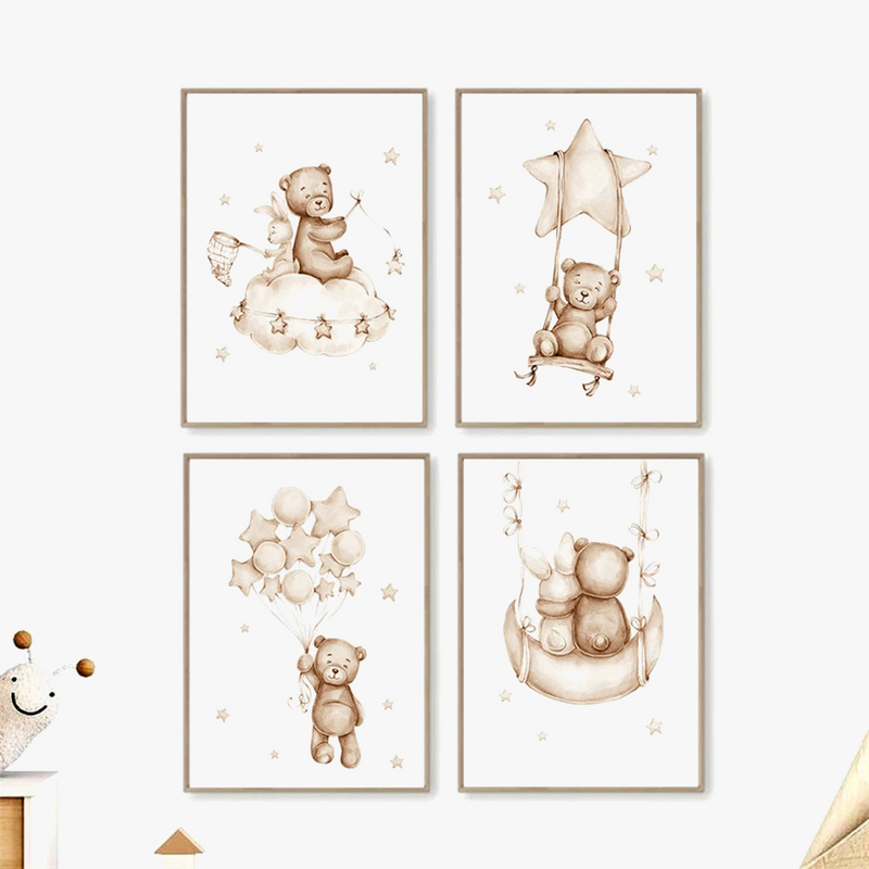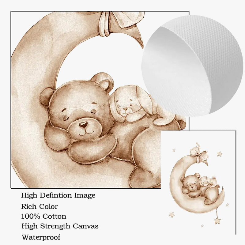 Nom du produit | Impression sur toile nuage lune lapin ours décoration murale enfant |