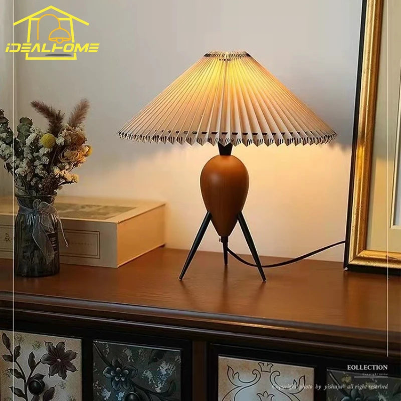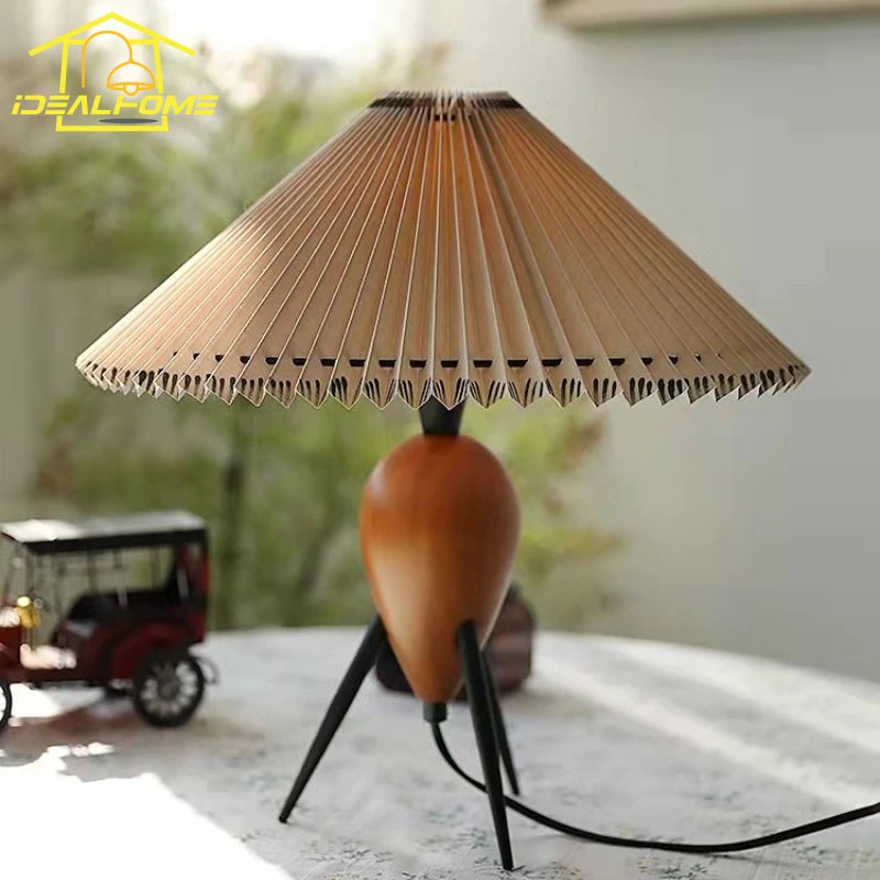 Nom du produit | Lampe à poser plissée en bois massif et tissu design moderne |