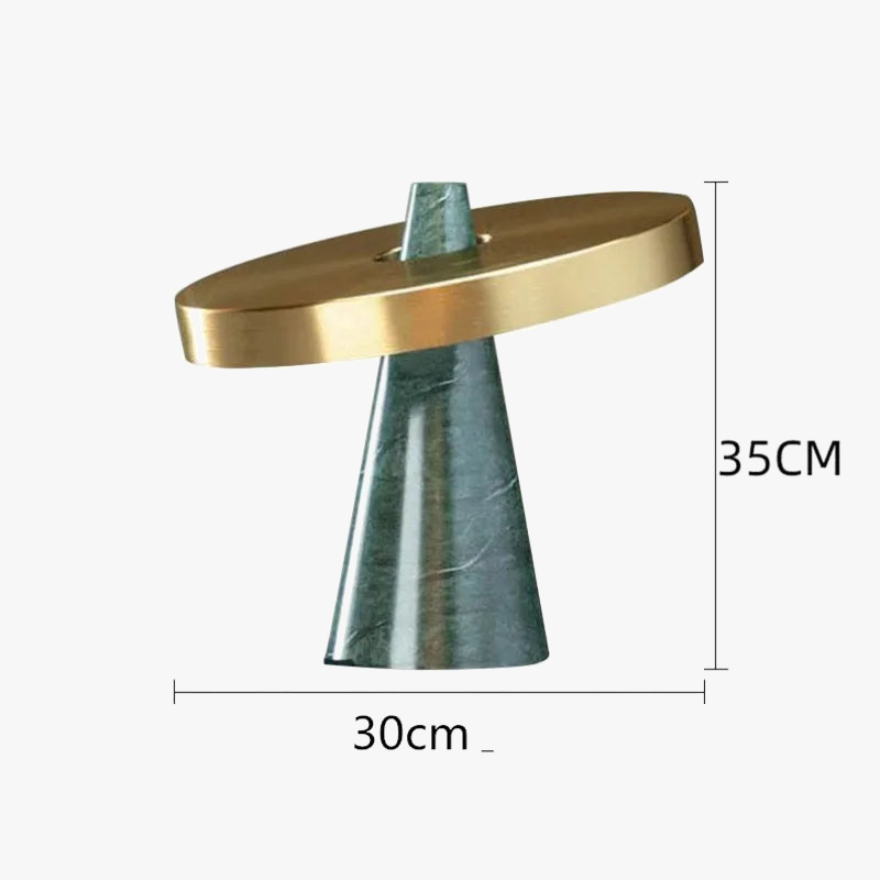 Le marbre, matériau noble et intemporel, est ici employé dans un vert doux et apaisant, qui se marie à merveille avec le métal doré de la structure. Cette combinaison de couleurs et de matériaux donne à cette lampe un look unique, qui ne manquera pas de faire sensation auprès de vos invités.