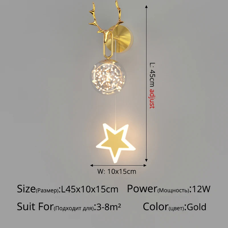 | Nom du produit | Applique murale minimalistes nordiques luxe étoiles lustre chevet |