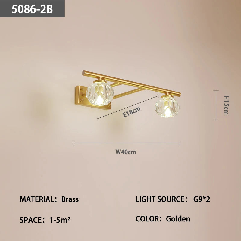 Nom du produit Led personnalité mode tout cuivre cristal miroir phare moderne simple anti-buée salle miroir phare