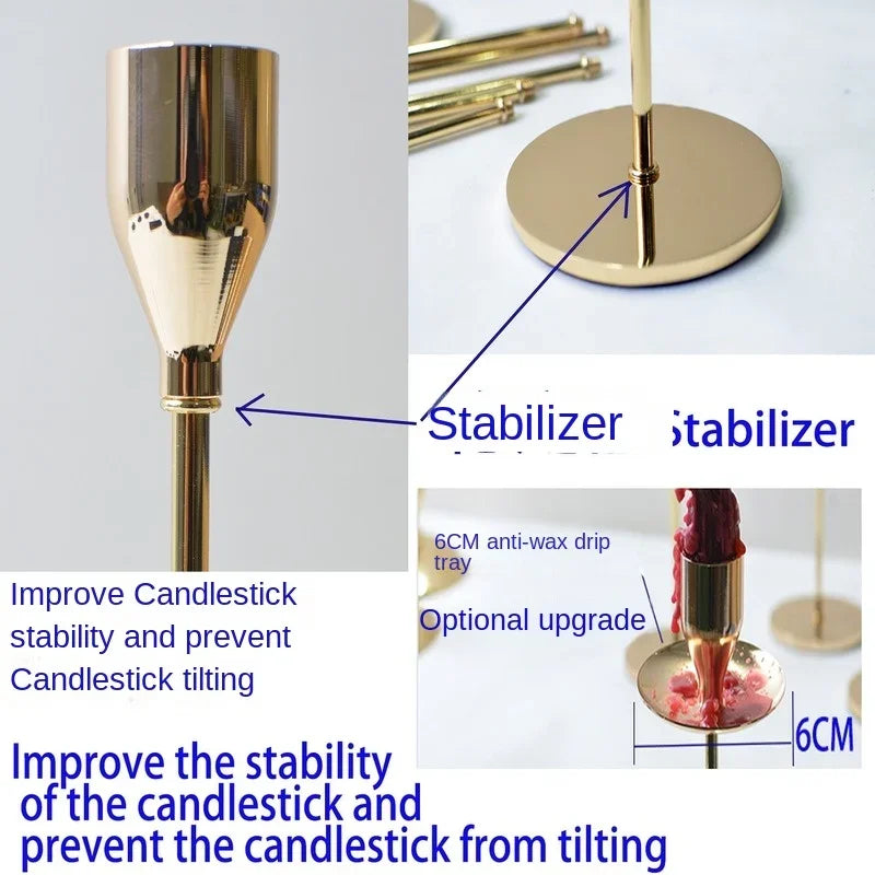 Fabriqués en métal de haute qualité, ces bougeoirs se démarquent par leur finition dorée qui apporte une touche de luxe à votre décoration. Leur design épuré et contemporain s'intègre parfaitement dans des styles variés, qu'ils soient industriels, scandinaves ou modernes. Leur allure raffinée en fait un choix versatile, capable de s'adapter à un mariage élégant ou à une fête décontractée.
