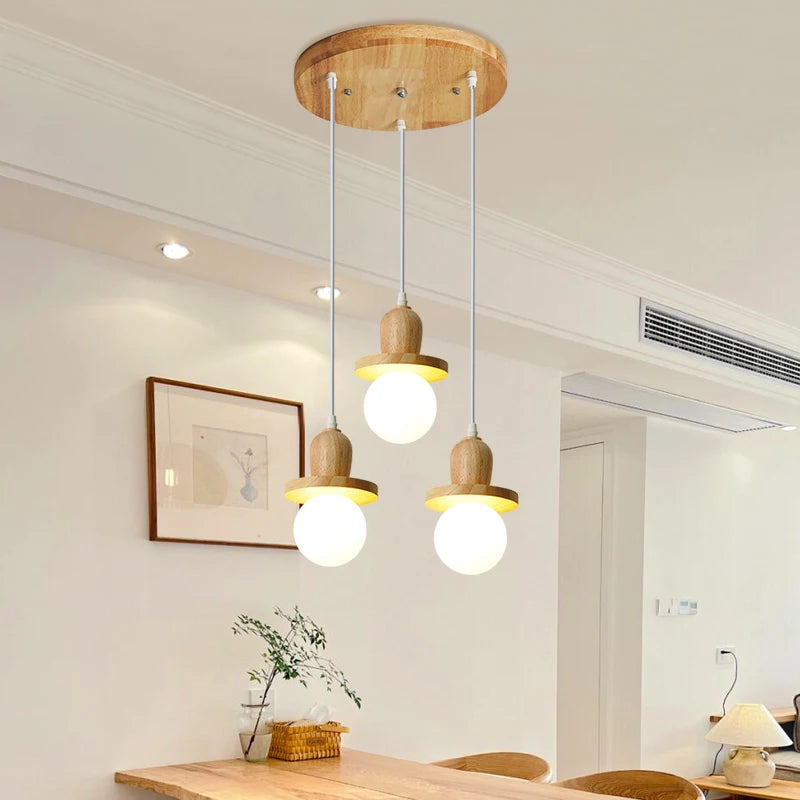 Lustre en bois solide style nordique avec trois têtes