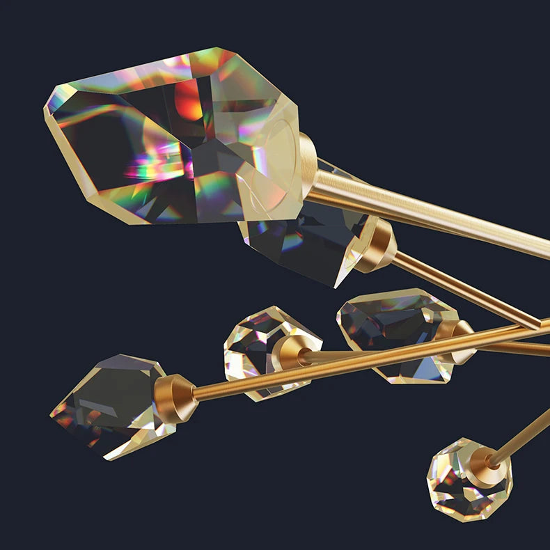 Nom du produit Lustre en cristal et cuivre style art déco design moderne