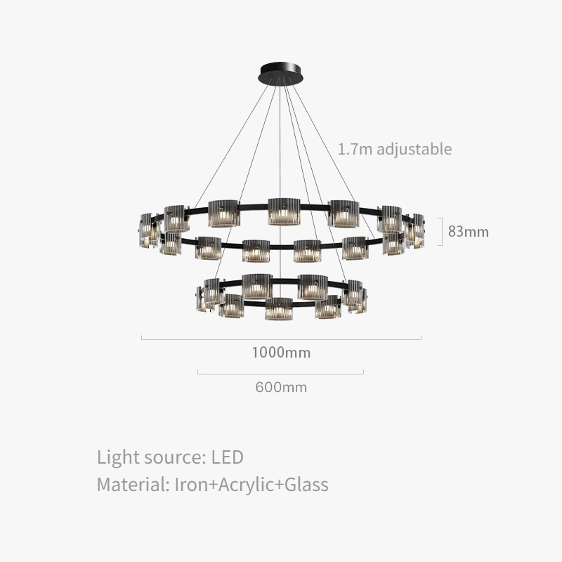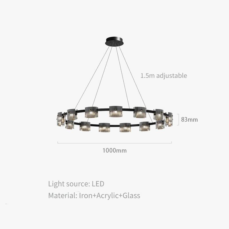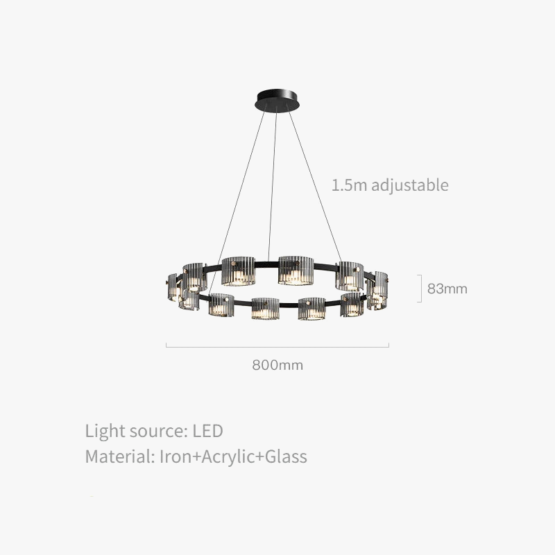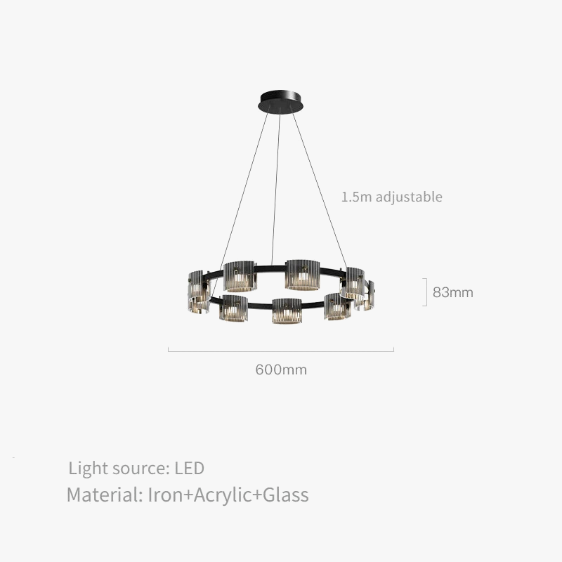 Fabriqué en verre et en fer, ce lustre allie robustesse et élégance. La combinaison de ces matériaux garantit non seulement une durabilité exceptionnelle, mais également un entretien facile. Le verre ajoute une note de sophistication, tandis que le fer, avec sa finition soignée, offre une touche industrielle chic. De plus, les ampoules LED incluses sont non seulement efficaces, mais elles contribuent également à réduire votre empreinte énergétique, un choix judicieux pour ceux qui cherchent à allier esthétique et respect de l'environnement.