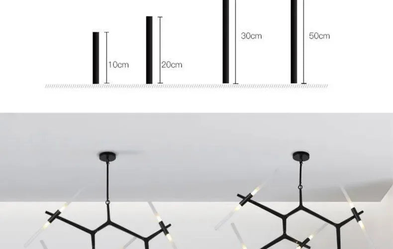 Le lustre moderne en verre led tube branche trouve sa place dans diverses pièces de la maison. Il est idéal pour le salon, où il apporte une touche de glamour moderne et illumine vos soirées entre amis ou en famille. Dans la salle à manger, il crée une ambiance conviviale pour vos repas festifs. Dans la chambre, il sert de lumière d'ambiance pour vos moments de détente.