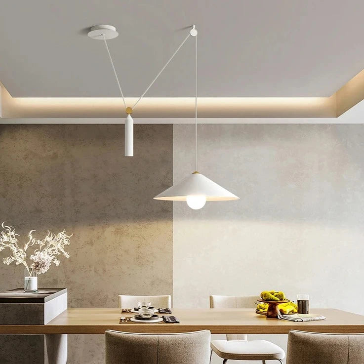 Inspiré par le design nordique, ce luminaire suspendu présente une esthétique minimaliste, avec une structure en métal noir ou blanc, offrant une apparence à la fois moderne et intemporelle. Sa finition en fer apporte une touche industrielle qui complète parfaitement les décors contemporains. La simplicité de son design fait de ce lustre un choix idéal pour ceux qui recherchent un éclairage élégant sans encombrement visuel. Il est doté d'une ampoule LED, offrant une lumière douce et chaleureuse qui créera une atmosphère accueillante dans n'importe quel espace.