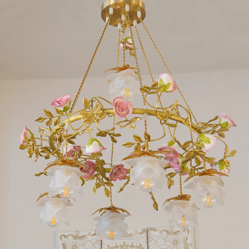 Nom du produit | Lustre pastoral français en céramique design luminaires suspendus |