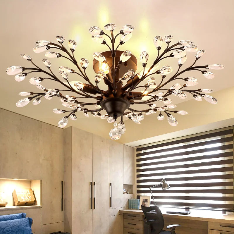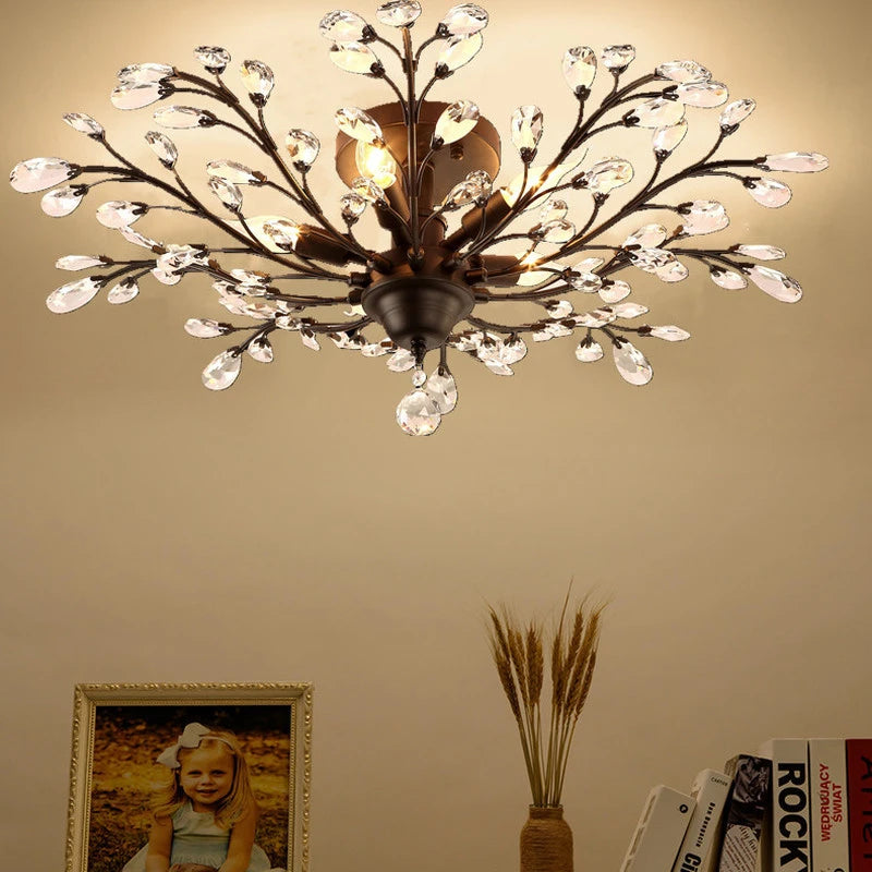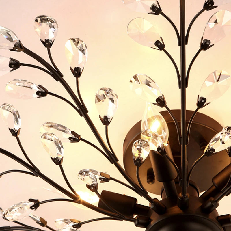 Ce lustre se distingue par sa structure en métal noir, qui apporte une note contemporaine tout en préservant l'aspect vintage que recherchent de nombreux amateurs de décoration. Ses suspensions en cristal reflètent la lumière de manière spectaculaire, créant des jeux de lumière fascinants sur vos murs et plafonds. Ce luminaire ne se contente pas d'éclairer votre espace, il en devient également un élément décoratif à part entière.