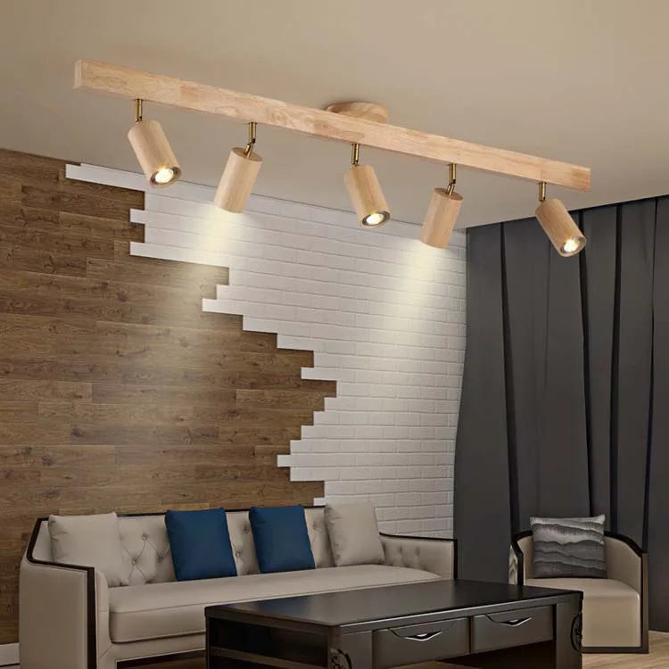 Plafonnier en bois avec projecteur rotatif réglable décoratif