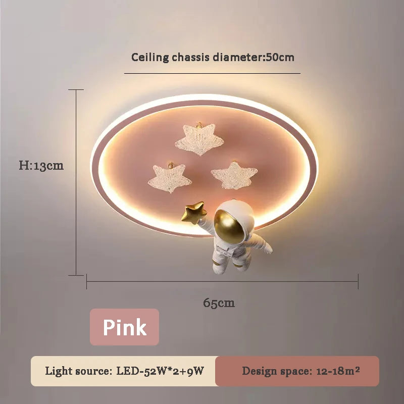 Le plafonnier astronaute ne se limite pas à être un simple éclairage : il devient un élément clé de la décoration intérieure. Avec sa couleur rose tendre, il s'harmonise facilement avec d'autres éléments de mobilier et accessoires, qu'ils soient scandinaves, modernes ou enfantins. Vous pouvez l'associer avec des rideaux colorés, des tapis ludiques ou des stickers muraux sur le thème de l'espace afin de créer une ambiance féérique qui émerveillera vos enfants.