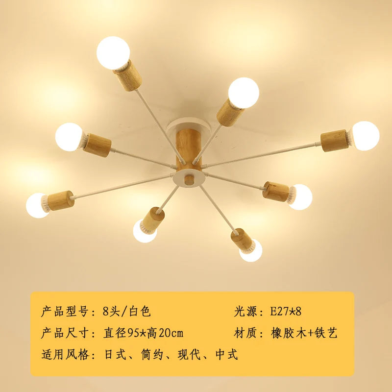 Plafonnier moderne en bois massif lampe à led design créatif nordique