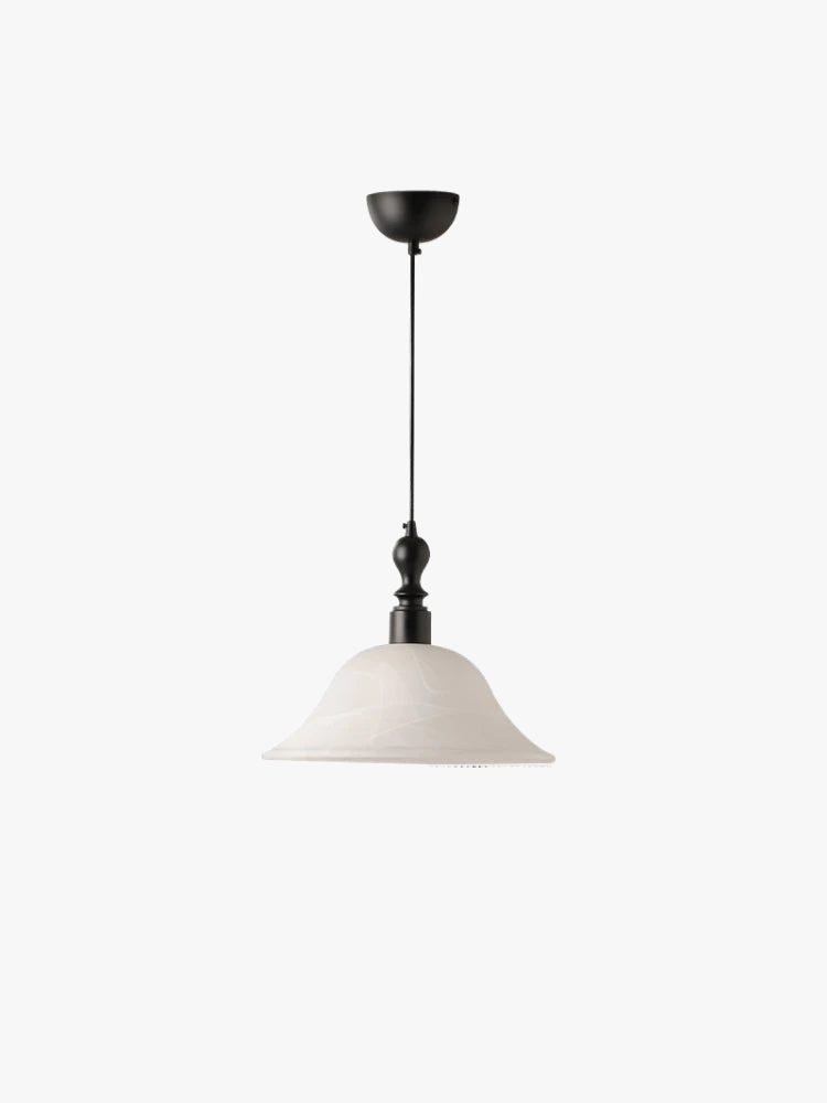 La suspension est fabriquée en bois massif, garantissant non seulement une durabilité exceptionnelle, mais également une esthétique chaleureuse. Le choix du verre pour l'abat-jour permet de diffuser la lumière de manière douce, créant ainsi une ambiance intime et conviviale. Que vous choisissiez d'installer ce luminaire dans un cadre moderne ou plus traditionnel, il saura s'adapter grâce à ses finitions raffinées et sa palette de couleurs neutres.